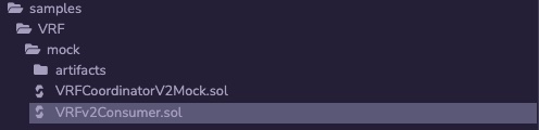 Your RemixIDE file explorer should display VRFCoordinatorV2Mock.sol and VRFv2Consumer.sol: